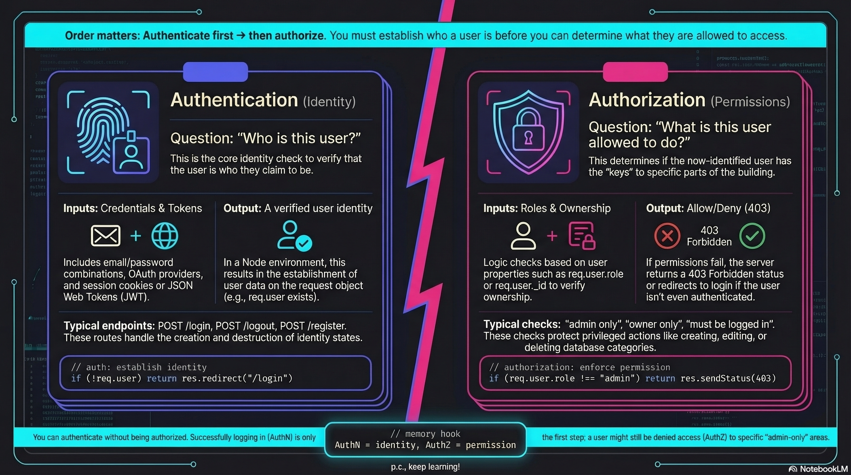 Section titled “Extra Bits & Bytes”📘 AuthN vs AuthZ Infographic (PNG)